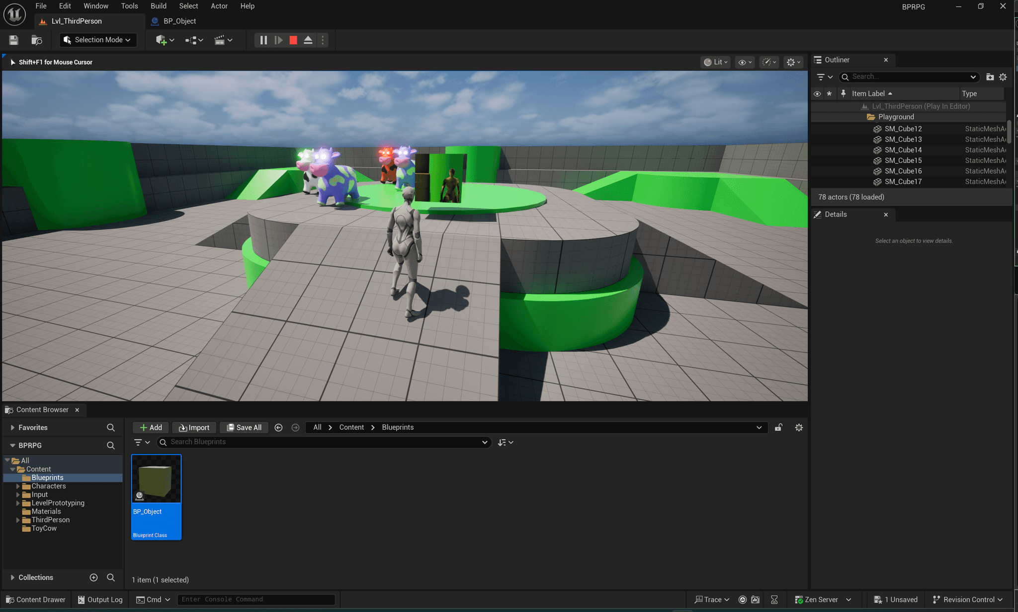 - 언리얼의 레벨에는 각종 이벤트 로직을 추가할 수 있다. 유니티의 레벨과는 다르다(유니티는 레벨이 껍데기고 게임 매니저가 따로 존재함)