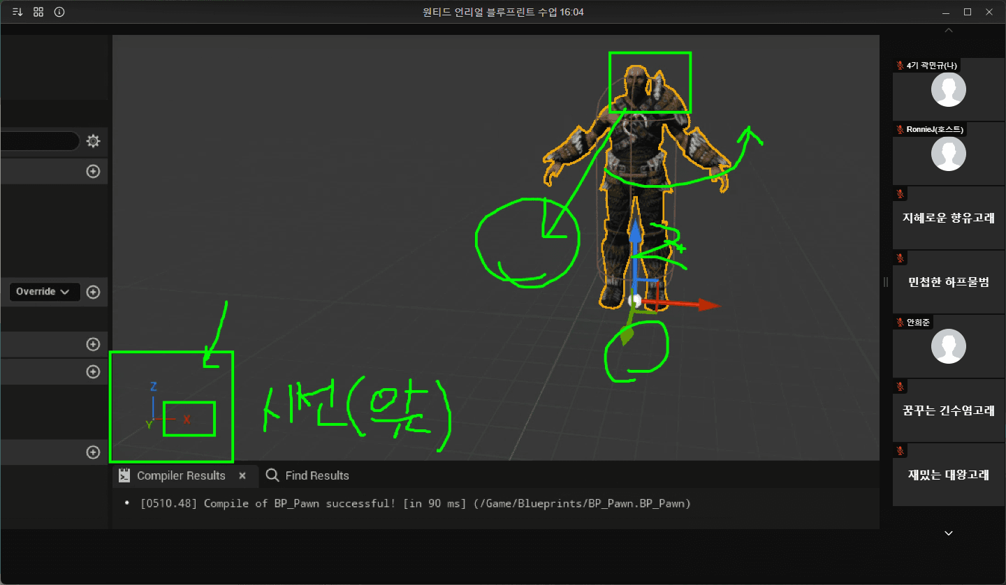 언리얼은 w키 이동이 y축이 아니라 x축이라 조심해야함