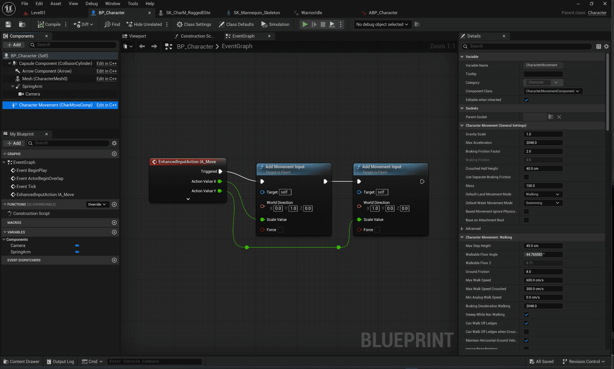 근데 이렇게 직접 Pawn의 키입력을 조정하지는 않고 보통 입력이 필요하면 Character 클래스의 내장된 CharMovmentComponent를 사용함