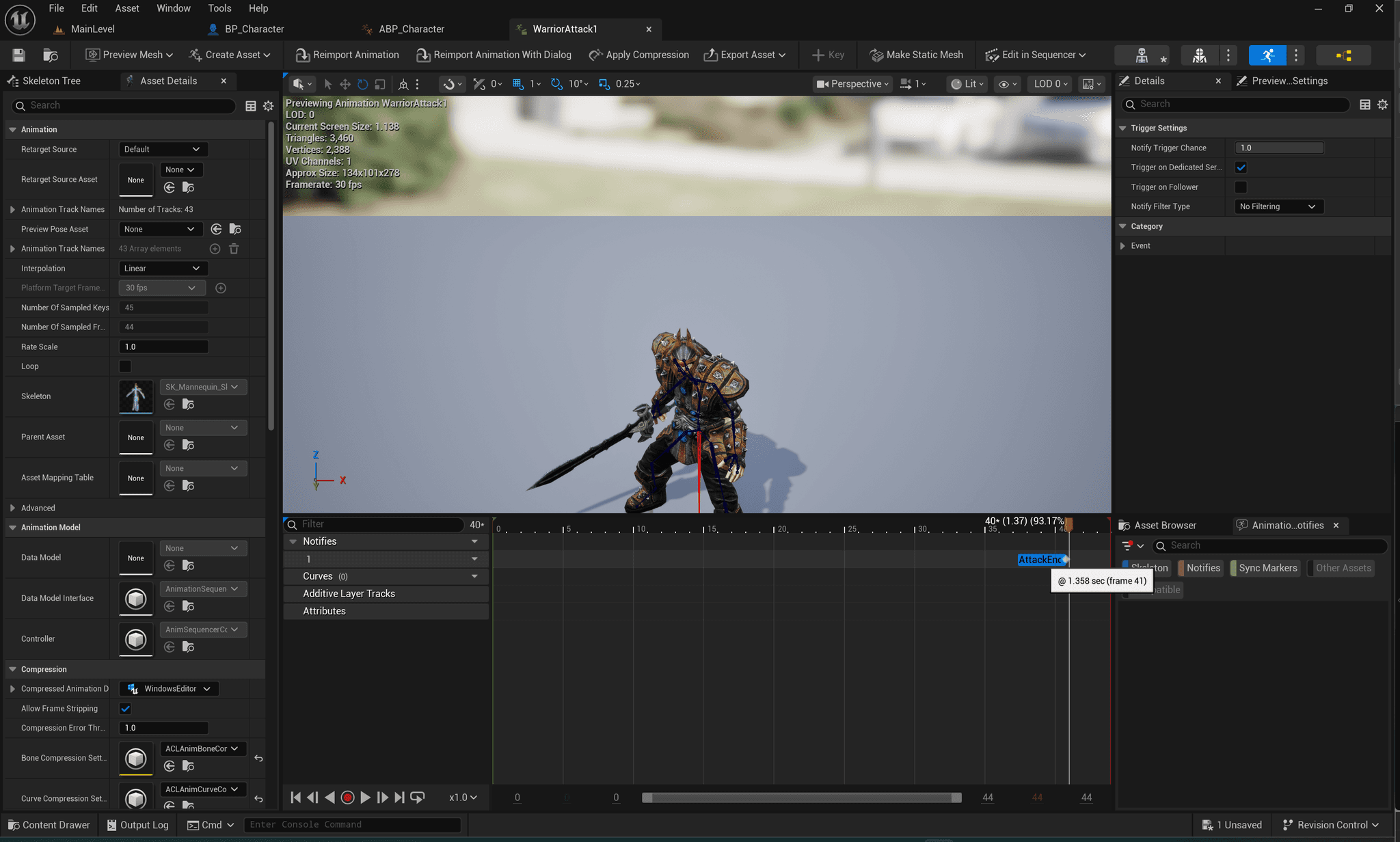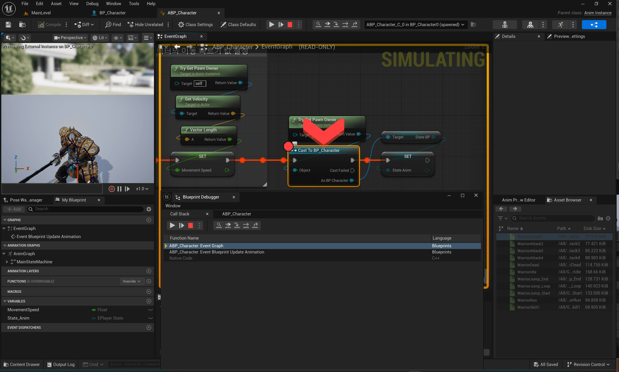 - SkeletalMesh가 애니메이션을 소유해야 이벤트 그래프가 동작함