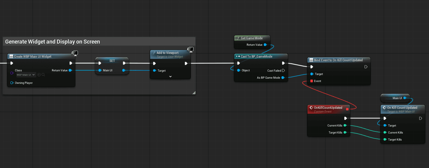 - PlayerController에서 이벤트 바인딩(GameMode와 UI간 직접 결합 방지)