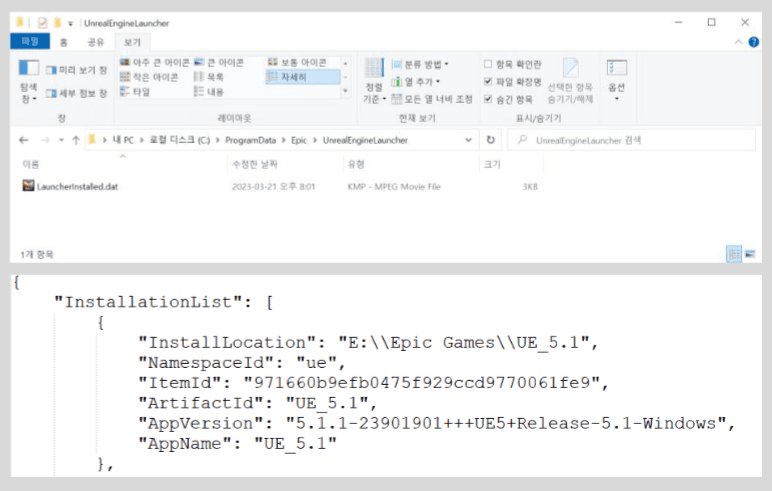 ProgramData/Epic/UnrealLauncher폴더에 에픽 런처가 지정한 정보가 있음(JSON)