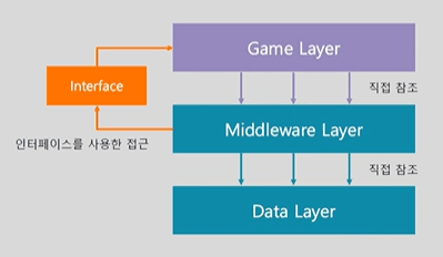 - 미들웨어 레이어 : 게임에 사용되는 미들웨어 모듈 ( UI, 아이템, 애니메이션, AI 등등.. )