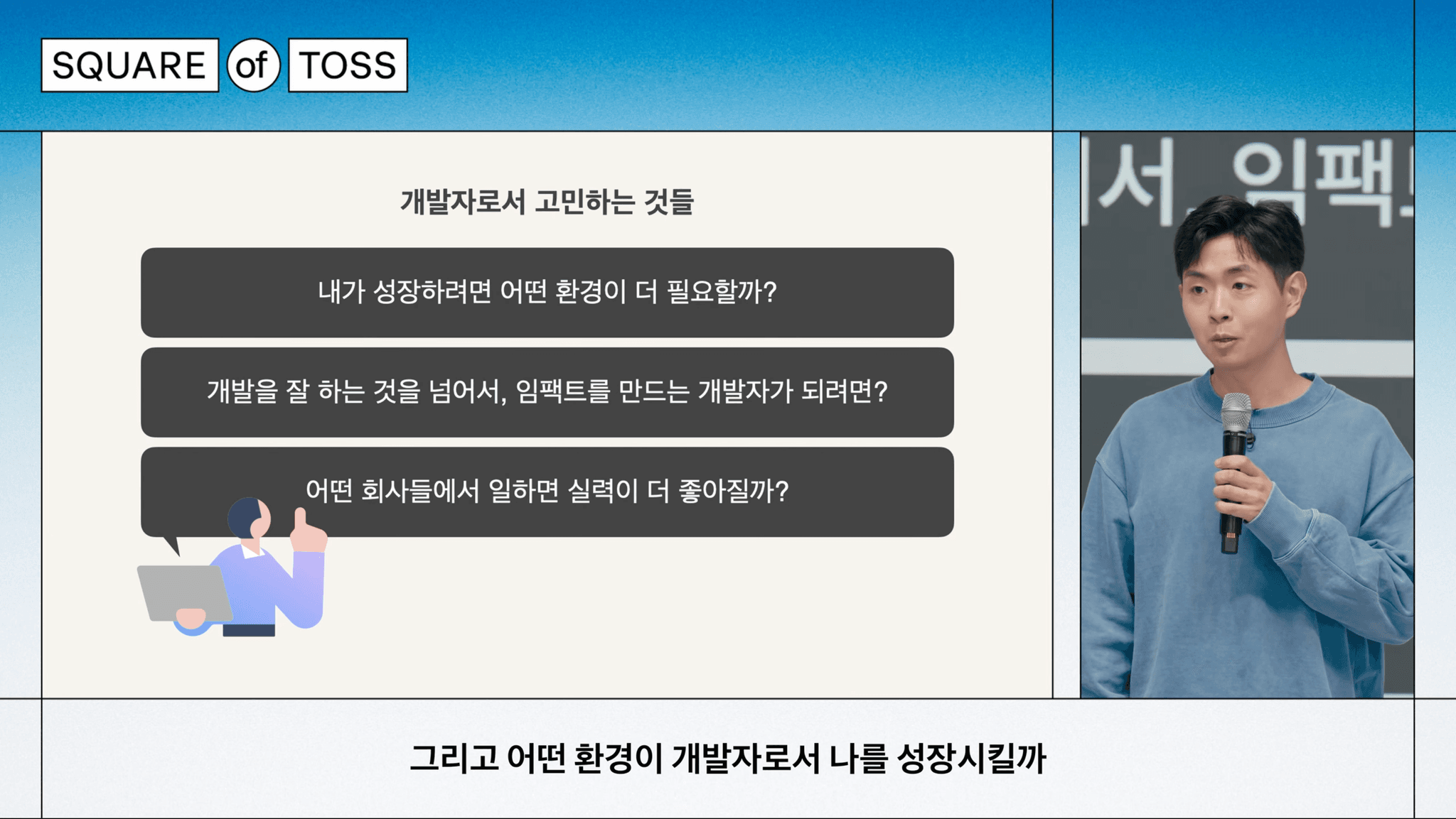 바로 그 채울 수 없는 '주체성'에 대한 해답을 찾지 못하고 있다가, 위 토스 프론트엔드 헤드의 발표 영상을 접하면서 가슴의 울림과 부끄러움 양가 감정을 얻게 되었다.