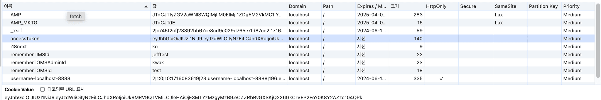 - 브라우저 쿠키에 저장돼있는 엑세스토큰은 로컬호스트의 포트를 구별하지 못한다 == PMS의 토큰이 그대로 TOMS에서 쓰일 수 있다